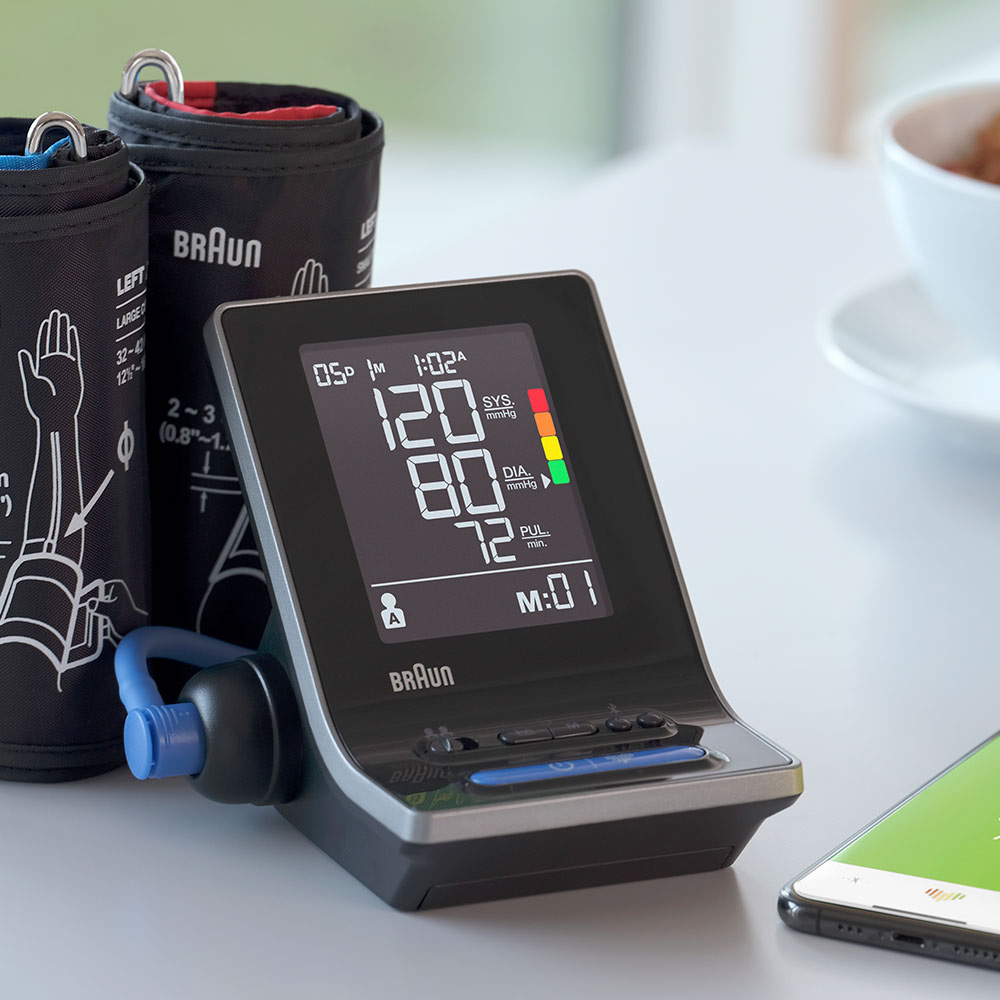 Kolay kullanımlı ve ergonomik BUA 6350, ortalama özelliği ve Braun Healthy Heart App ile Bluetooth bağlantısı kurarak tansiyon takibinizi kolaylaştırır.